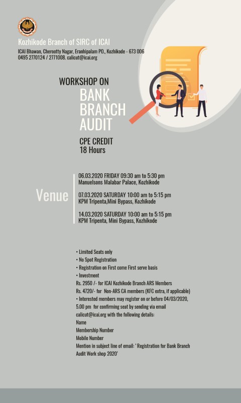3 Day Workshop on Bank Audit - 6,7,8 March 2020