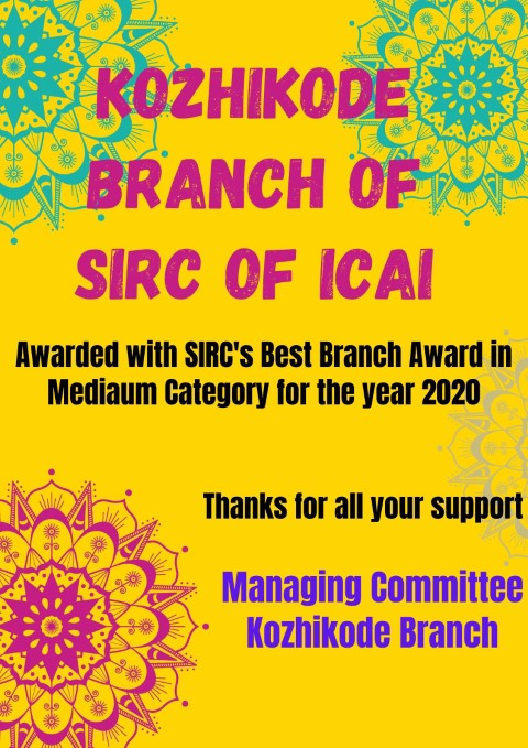 SIRC Best Branch Award 2020 for Kozhikode Branch